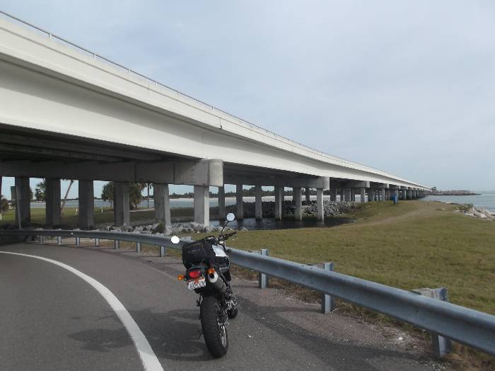 I'm now on top of the causeway, and it's a pretty long one. Nowhere near as long as the ones in the Florida Keys though.