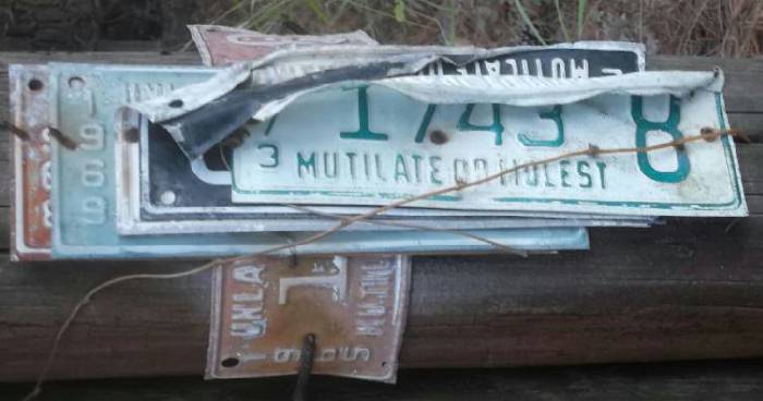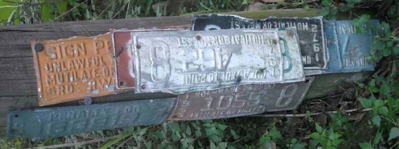 But what catches my eye is what looks like a license plate affixed to the sign. Look at the bottom left.