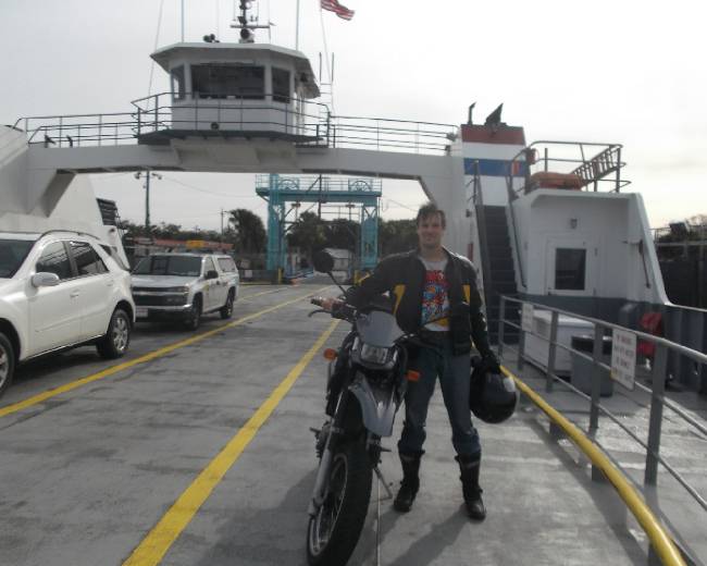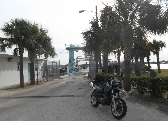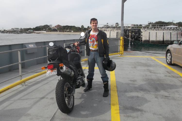 So here I am following A1A up the coast as far north as it goes, and I come across a break in the road. In order to cross the St. Johns river I have to take a Ferry. $5 for motorcycles. As soon as I get there, I am just in time, because I ride right on board. No time to take a photo at the staging area.