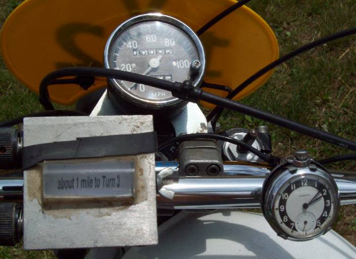This bike has the usual clocks used for enduro event. A trip meter (that cues you to various turns on the course), a stopwatch (since you have to arrive at stations along the course at set times) and finally the bike's standard odometer/speedometer.